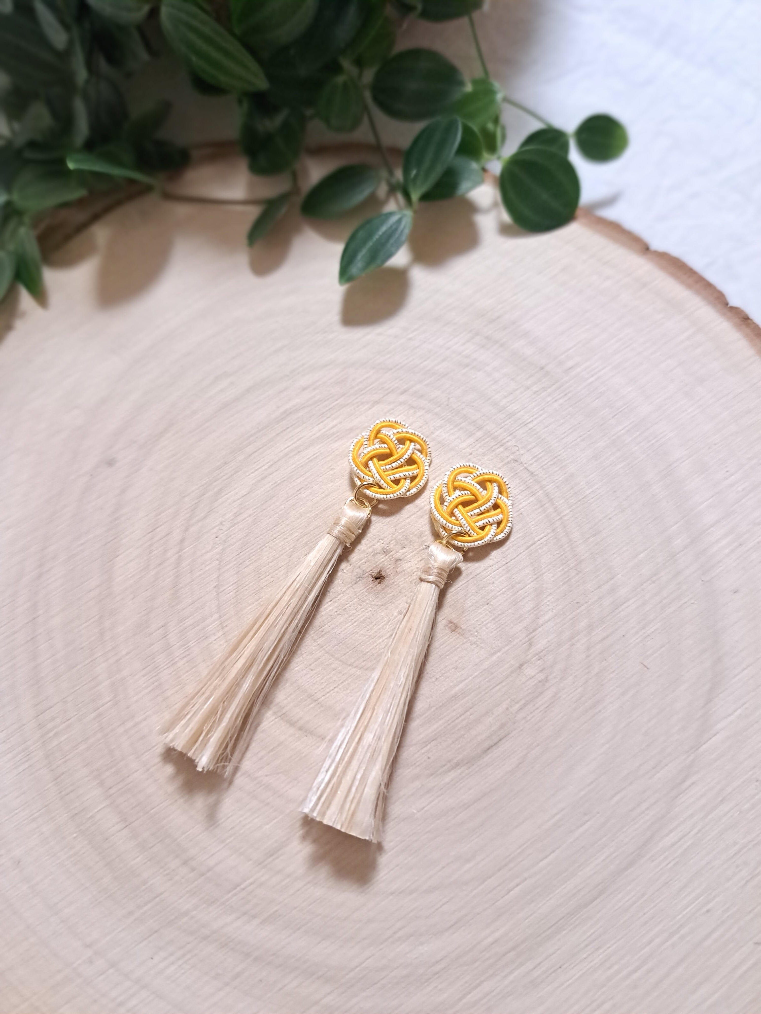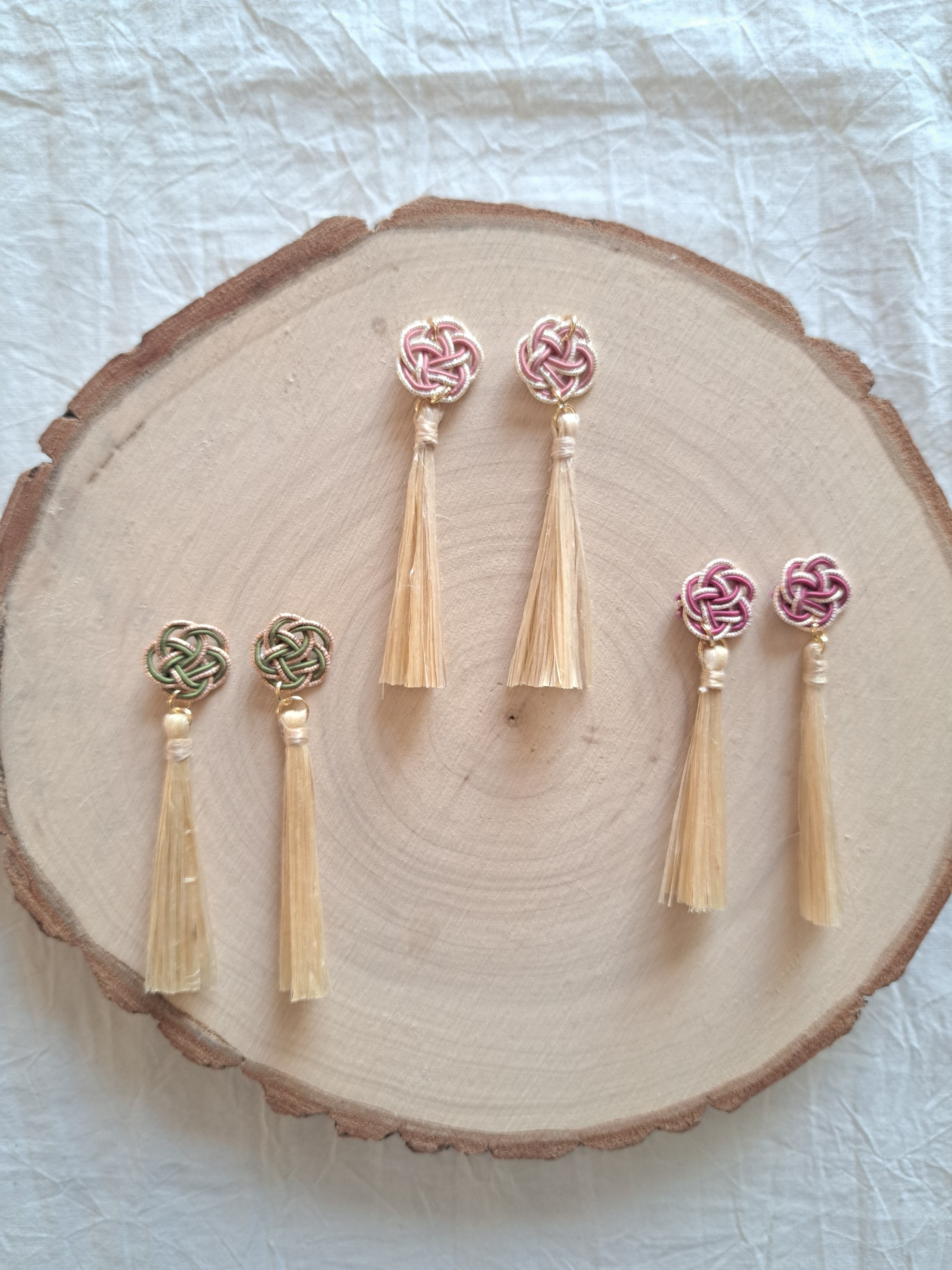精麻 ピアス(イヤリング) 水引(梅結び付き)