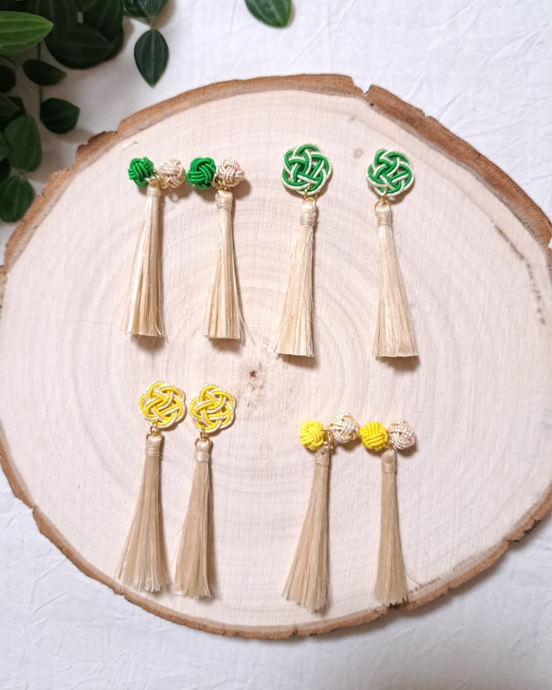 精麻 ピアス(イヤリング) 水引(玉結び付き) イエロー×イエローゴールド